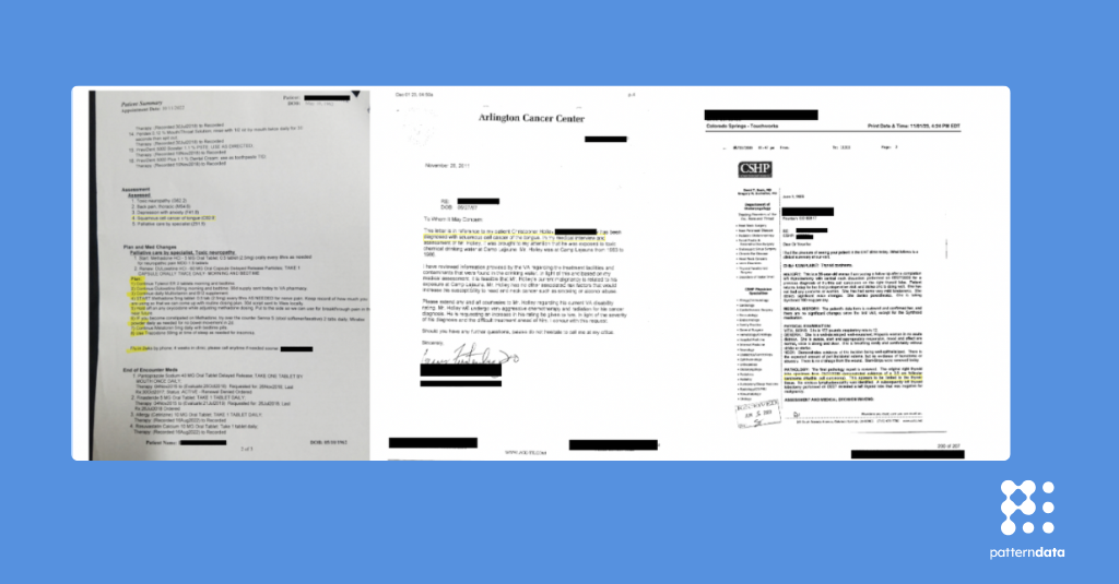 At Pattern Data, we address the complexity of medical record review through a unified strategy that combines advanced AI with human expertise. Our process begins by digitizing records with OCR and correcting errors with fuzzy matching. Fine-tuned models interpret medical terminology, disambiguate terms, and handle negations accurately. AI also segments records into meaningful sections to provide context for analysis.